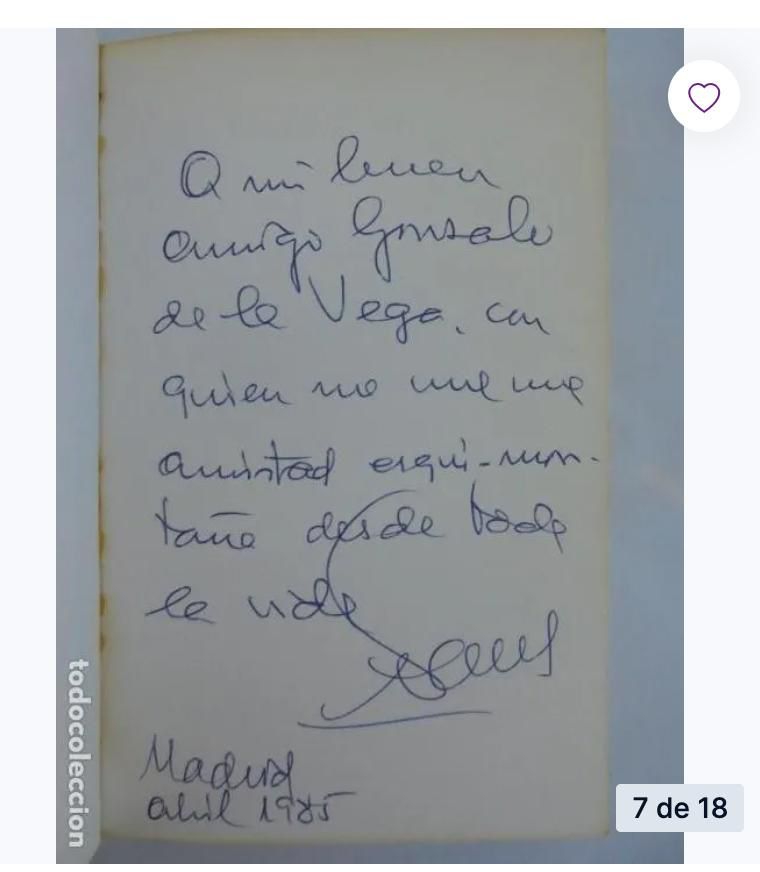Y resultó ser una muy especial, porque era, claro, la letra y firma de mi padre firmando ese ejemplar a un gran amigo de la familia, el gran Gonzalo de la Vega.