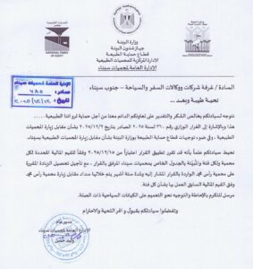 Para quien interese. Este escrito corresponde a las TASAS TURÍSTICAS DE ENTRADA AL PARQUE NACIONAL RAS MOHAMMED del Mar Rojo, Sinaí, además de las de aplicación en Dahab, Blue Hole y Brother Islands, aplicables como «campamento» a todos los barcos de vida a bordo.