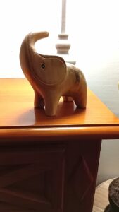 Un elefante de madera, con la trompa muuuuuuuy arriba.