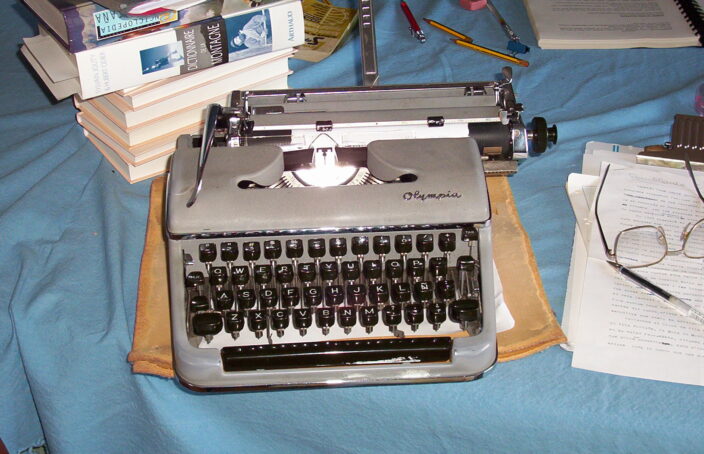 En ese despacho, con ese ambiente de lectura y recogimiento, lleno de recuerdos de montaña, familiares y de tantos y tantos esritores que habían dejado su legado en obra literaria, frente a unas enormes ventanas con vistas a la Collarada, mi padre le daba sin cesar a las teclas de su querida Olivetti, y no dejaba de publicar articulos, opiniones, guías de montaña, libros…