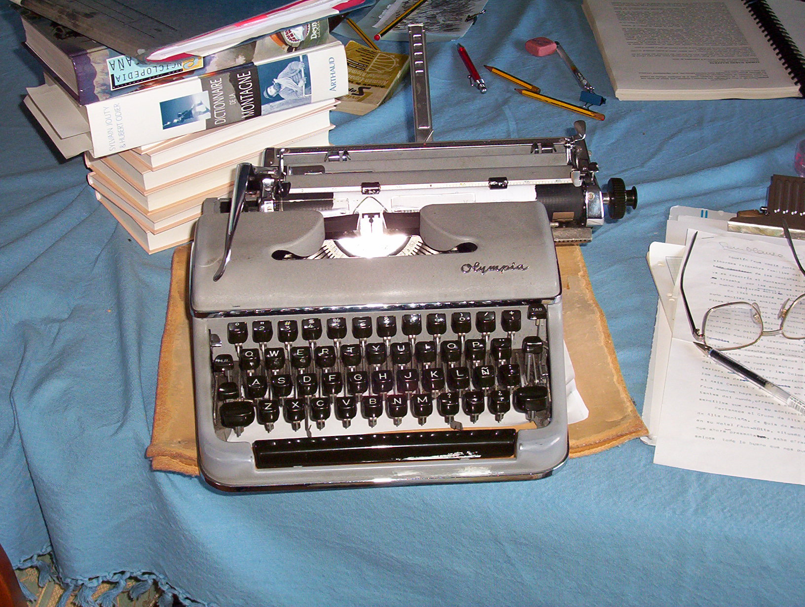 En ese despacho, con ese ambiente de lectura y recogimiento, lleno de recuerdos de montaña, familiares y de tantos y tantos esritores que habían dejado su legado en obra literaria, frente a unas enormes ventanas con vistas a la Collarada, mi padre le daba sin cesar a las teclas de su querida Olivetti, y no dejaba de publicar articulos, opiniones, guías de montaña, libros…